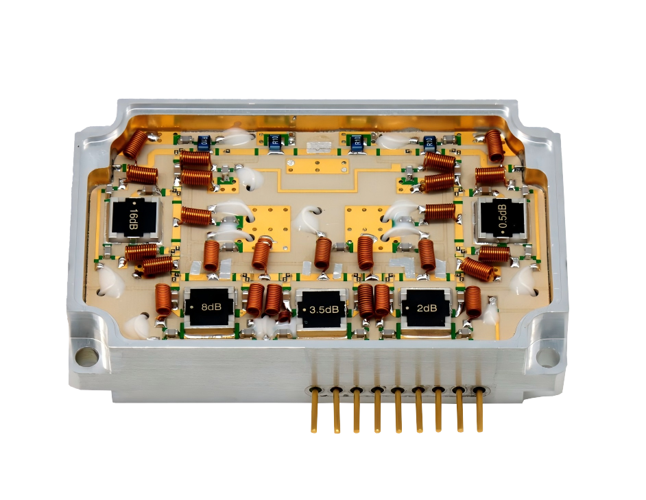Компактни размери, ниски загуби, висока мощност и висока точност на атенюиране. Високомощните цифрово управлявани атенюатори осигуряват ниски вносни загуби от 1,2 dB. Мощността, битовете за атенюиране и максималното атенюиране могат да се персонализират гъвкаво.